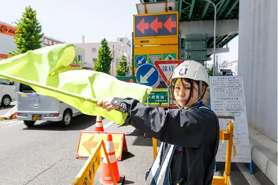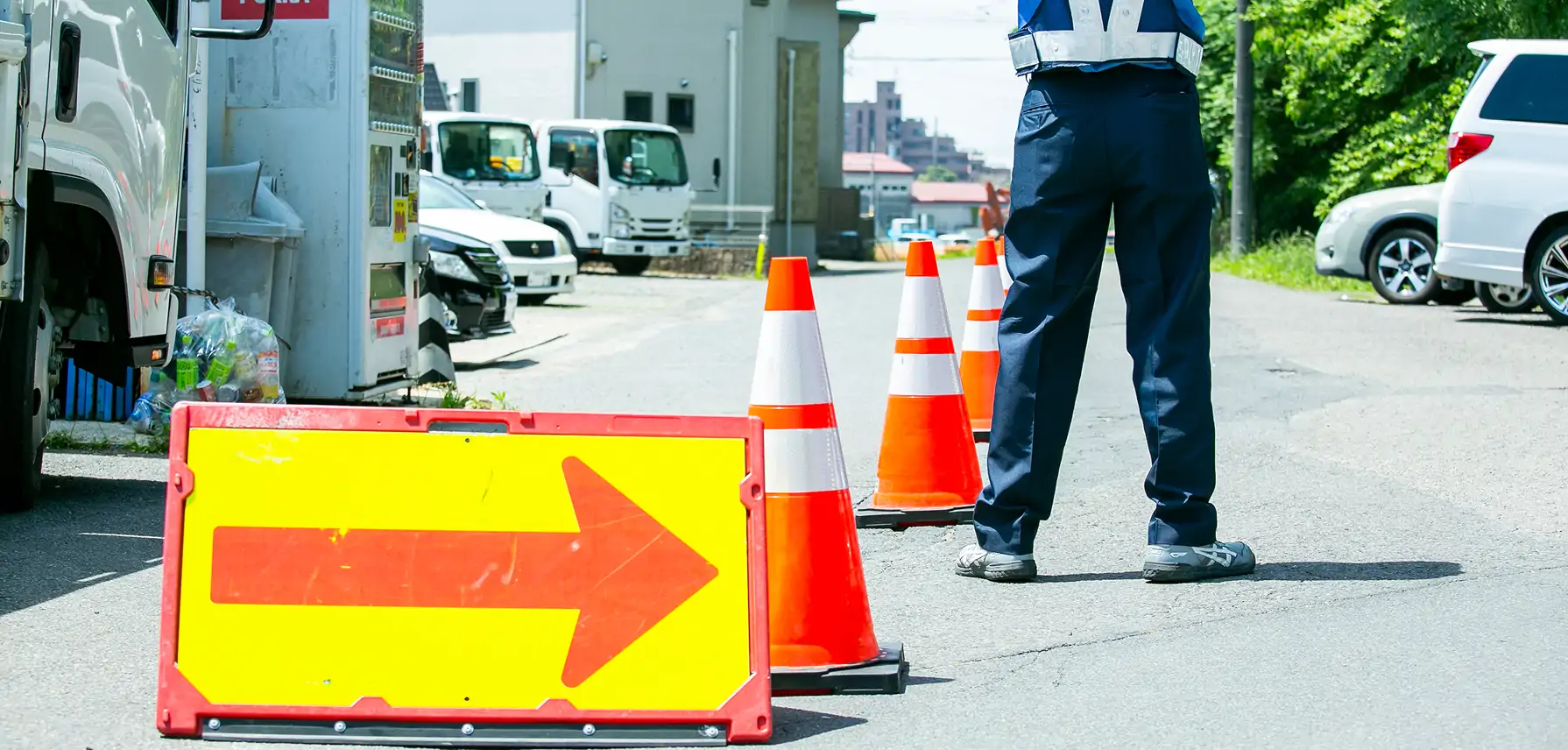 交通誘導警備は、通行人と作業員の安全を確保する仕事です。現場にいるすべての人の命を守ることは、未来の笑顔を守ることでもあるとキャラット警備保障は考えます。円滑な交通を確保し事故を防止するために、的確に判断し迅速に行動する「高品質な交通誘導警備」で安全を守ります。